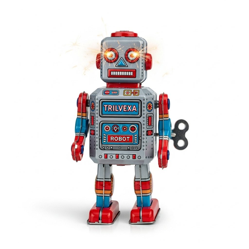 Trilvexa Classic Wind-Up Toy | Retro Tin Robot Collectible Sparking Fun